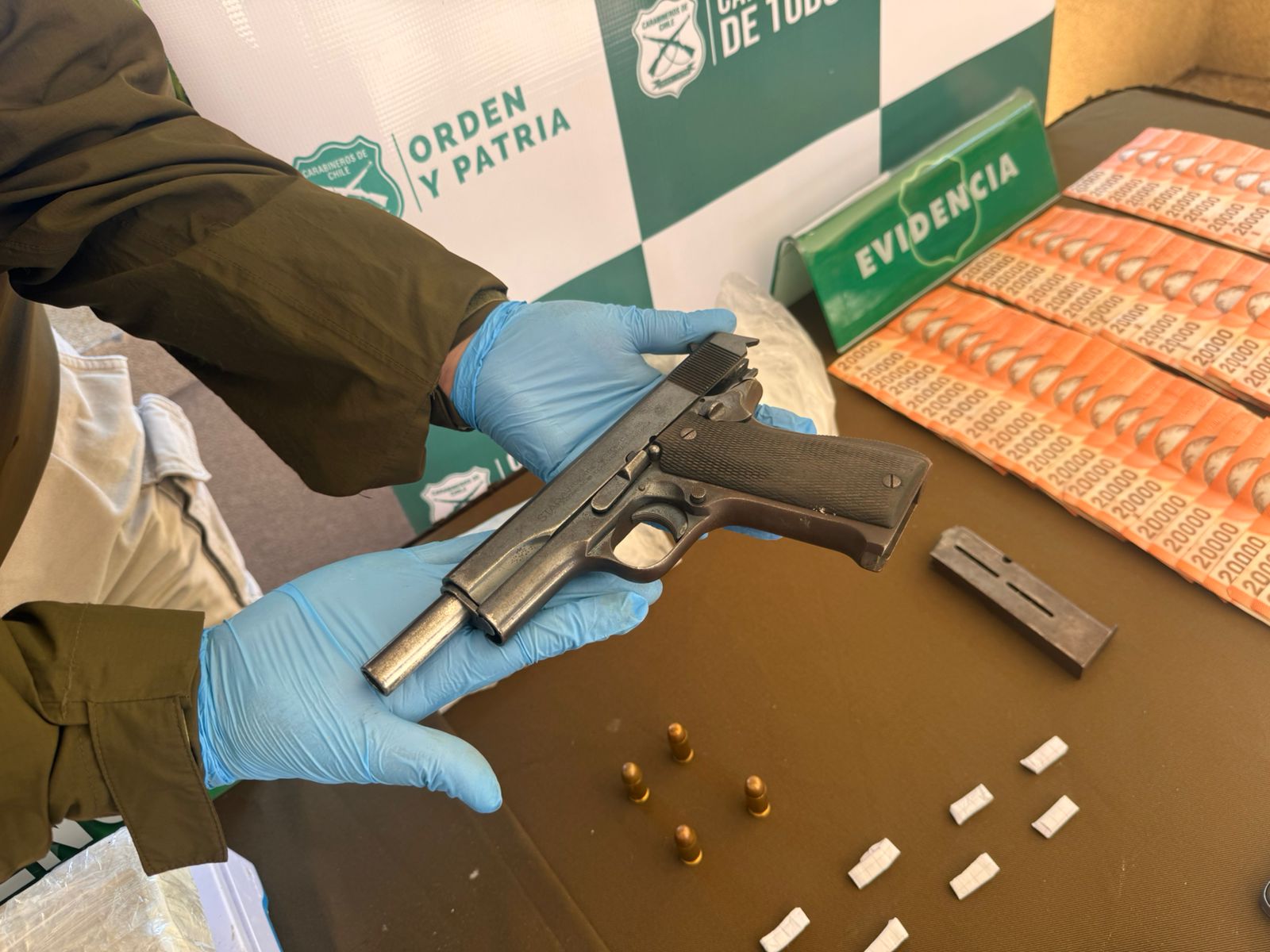 El imputado, chileno de 39 años, mantenía antecedentes policiales por infracción a la Ley 20.000, Ley de Control de Armas y secuestro.